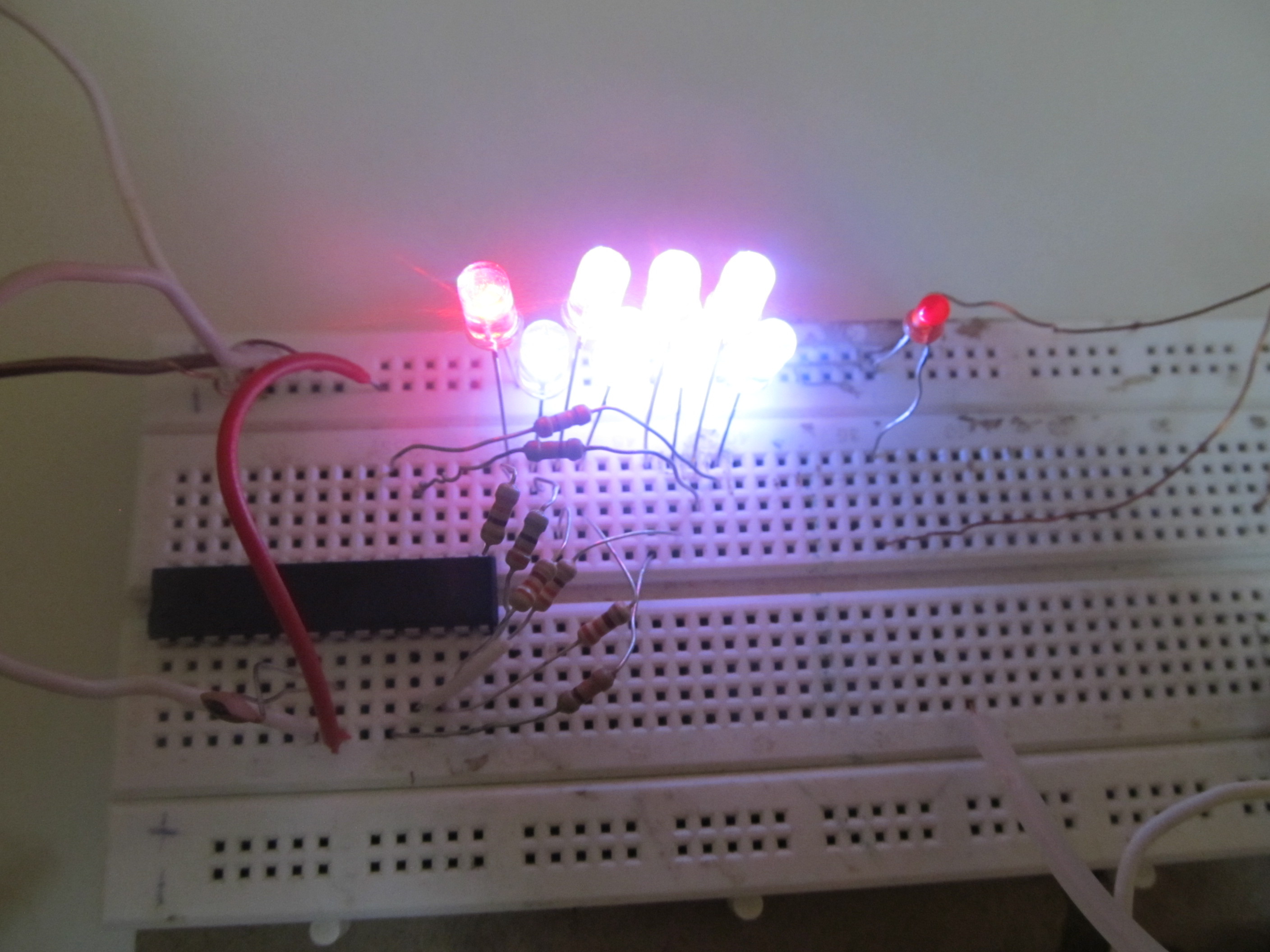 این پروژه دارای 16 led است (البته 8 تاled استفاده شده است) که 4 تا سفید و 4 تا قرمز که شما می توانید به سلیقه خودت هر رنگی که دوست داری استفاده کنید....... که جمعش بشه 16 تا led یعنی دو تا از پورت های atmega8 \پورت d و پورتb